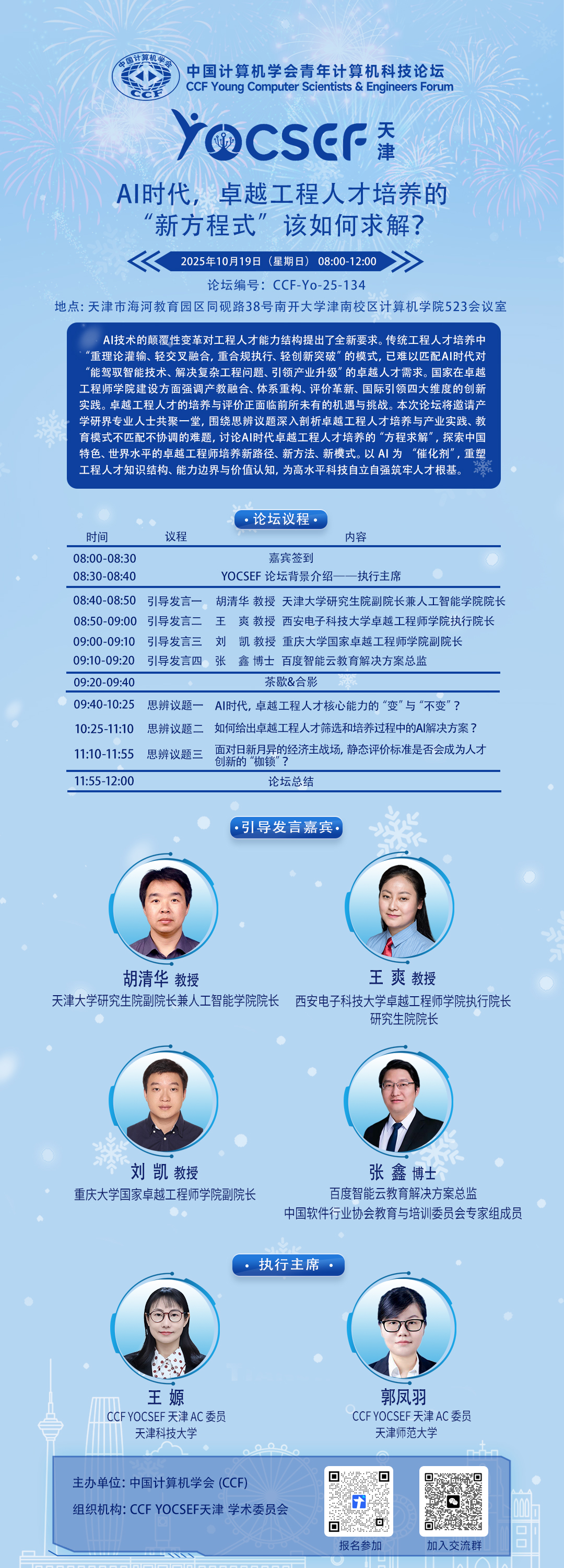【中国计算机学会青年计算机科技论坛】AI时代,卓越工程人才培养的“新方程式”该如何求解?