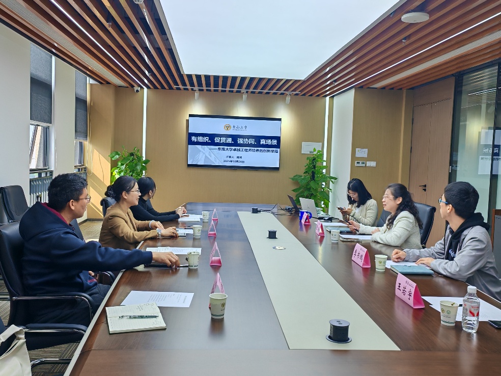 东南大学调研环节,两校重点讨论了数字化管理在卓越工程师培养中的应用。东南大学国卓院负责人介绍了东大工程硕博士课程体系建设的改革情况,将企业资源与教学实践深度融合,形成了独具特色的课程教学模式,推动betway88西汉姆联省域生态建设。bw必威西汉姆联调研组还详细调研了东大自主研发的校企联培信息化平台,并就平台运行效果与东大同仁进行了深入交流。