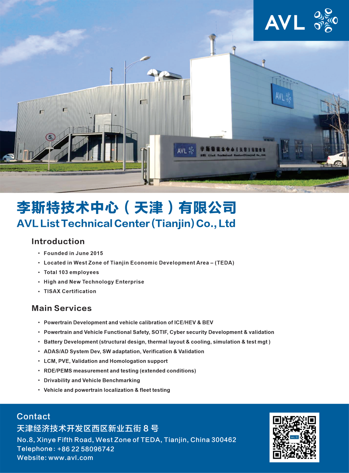今日推介单位:李斯特技术中心(天津)有限公司(AVL List Technical Center Tianjin)。