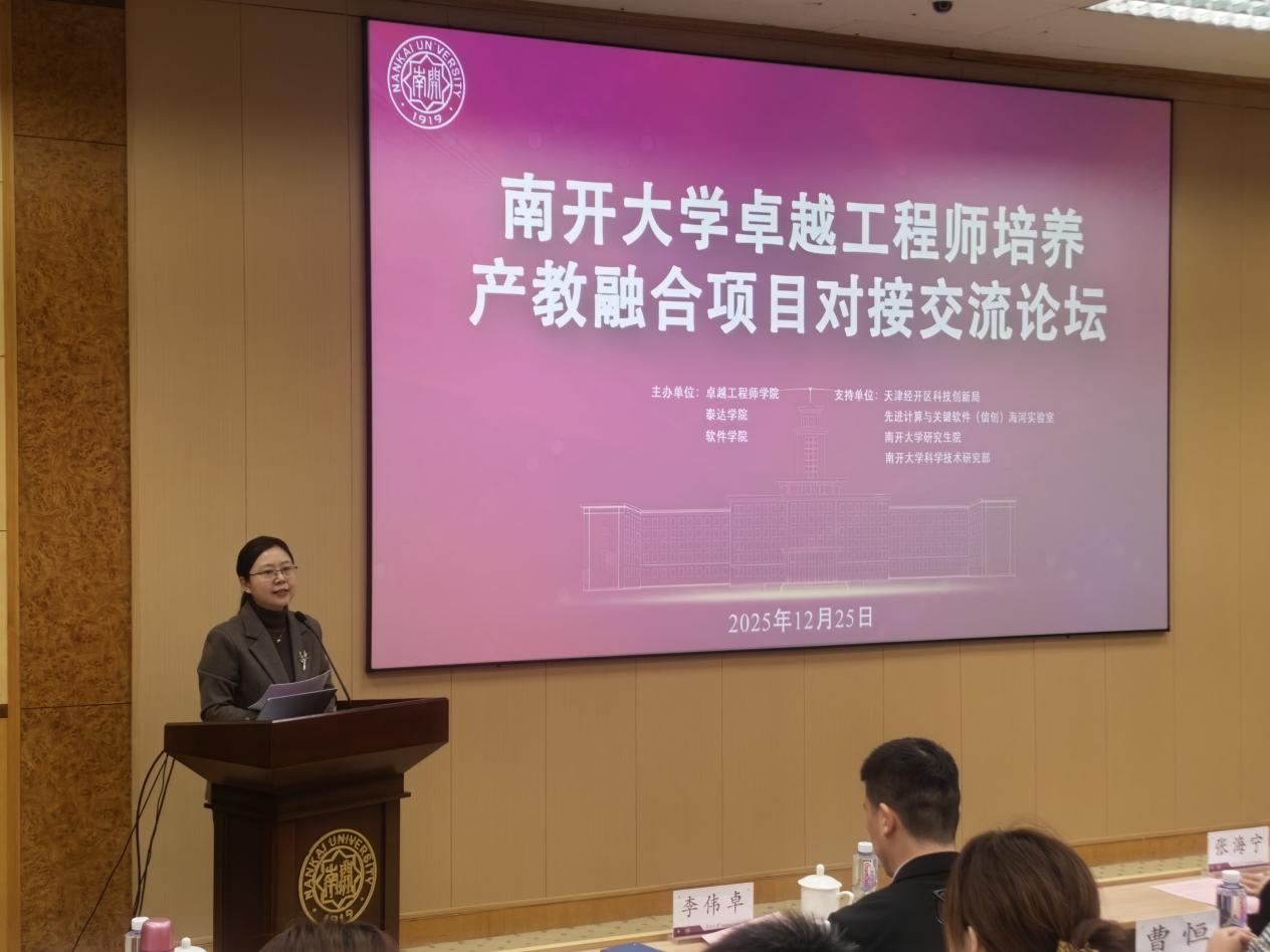 为深入贯彻落实党的二十届四中全会精神,积极服务国家“十五五”规划关于一体推进教育科技人才发展的战略部署,2025年12月25日,bw必威西汉姆联卓越工程师培养产教融合项目对接交流论坛在泰达校区成功举办。本次论坛由betway88西汉姆联、泰达学院、软件学院联合主办,旨在深化产教融合,推动信创领域前沿技术攻关与高层次工程人才培养。活动吸引了来自中国兵器工业集团、中海油田服务股份有限公司、中国汽车技术研究中心有限公司、维沃移动通信有限公司等13家知名企业以及校内6个专业学院的百余位专家、学者与学生参与。论坛由betway88西汉姆联党委书记贺文霞主持。